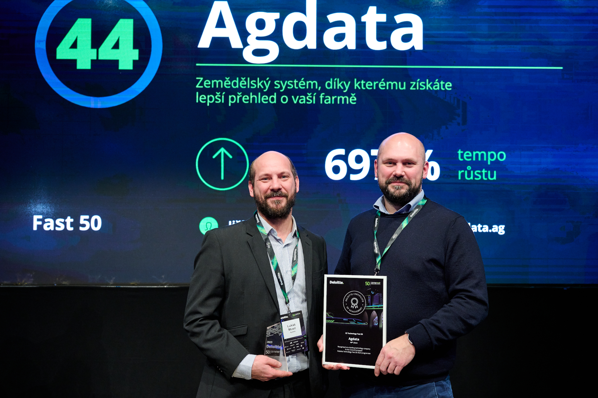 V roce 2023 byla společnost Agdata zařazena do žebříčku Deloitte Technology Fast 50 Central Europe.